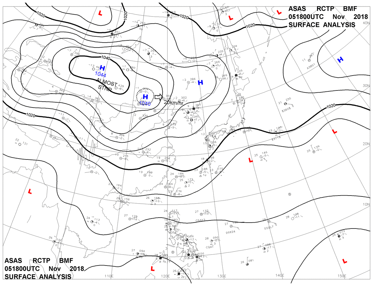 2018/11/05 18z sfcmap 天氣圖