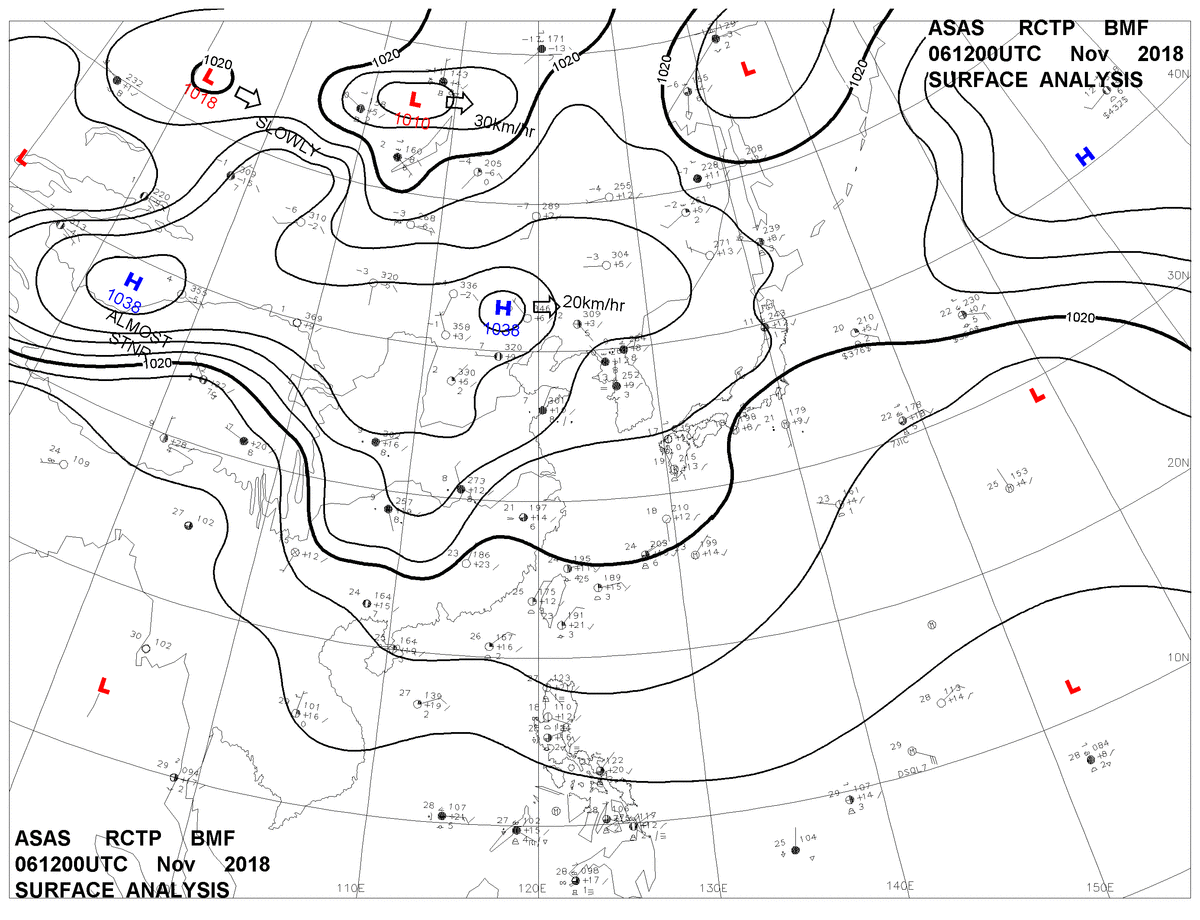 2018/11/06 12z sfcmap 天氣圖
