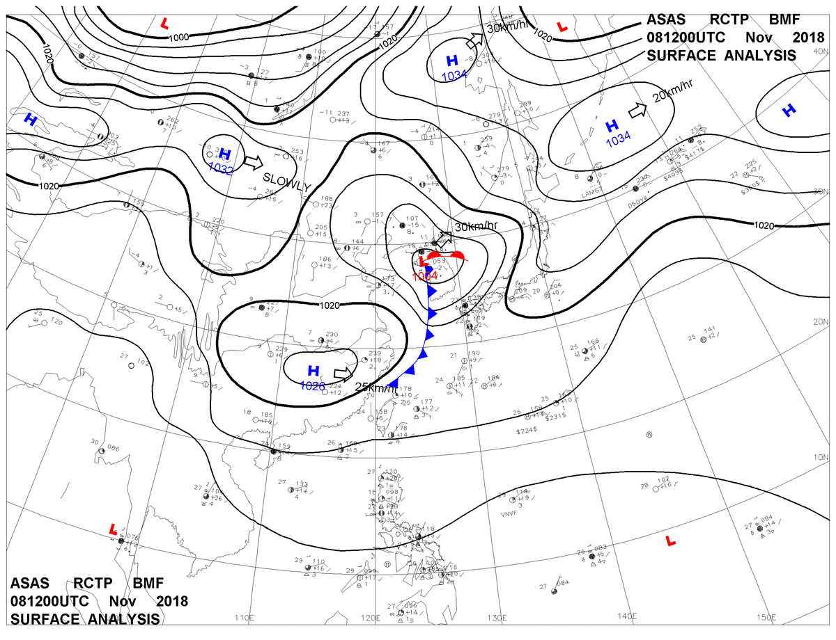 2018/11/08 12z sfcmap 天氣圖