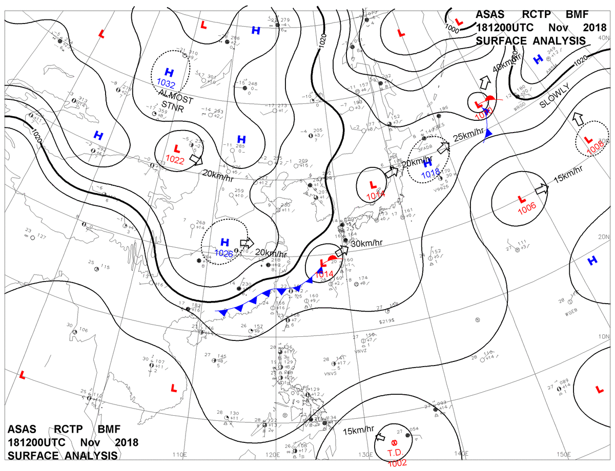 2018/11/18 12z sfcmap 天氣圖