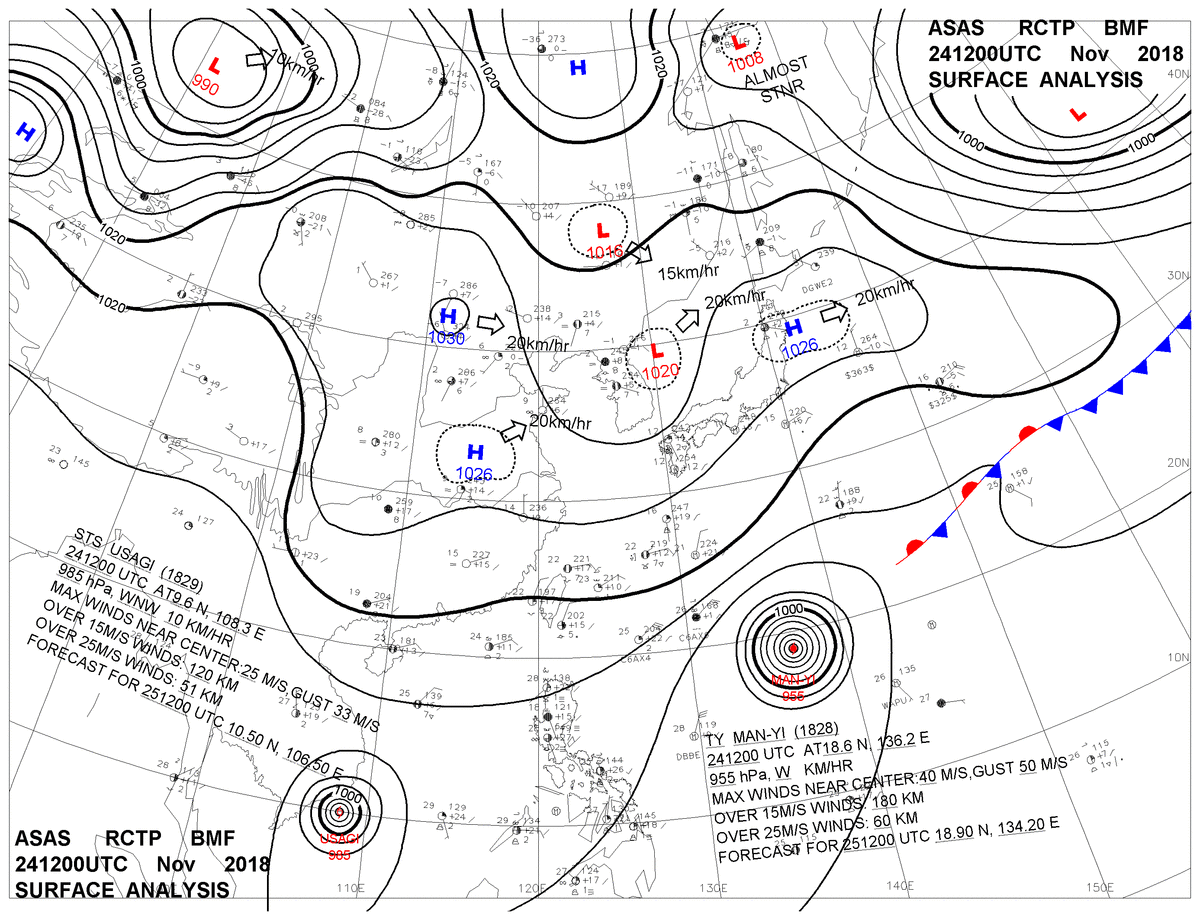 2018/11/24 12z sfcmap 天氣圖