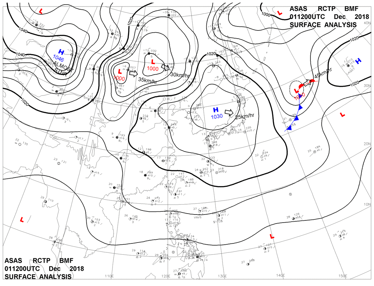 2018/12/01 12z sfcmap 天氣圖