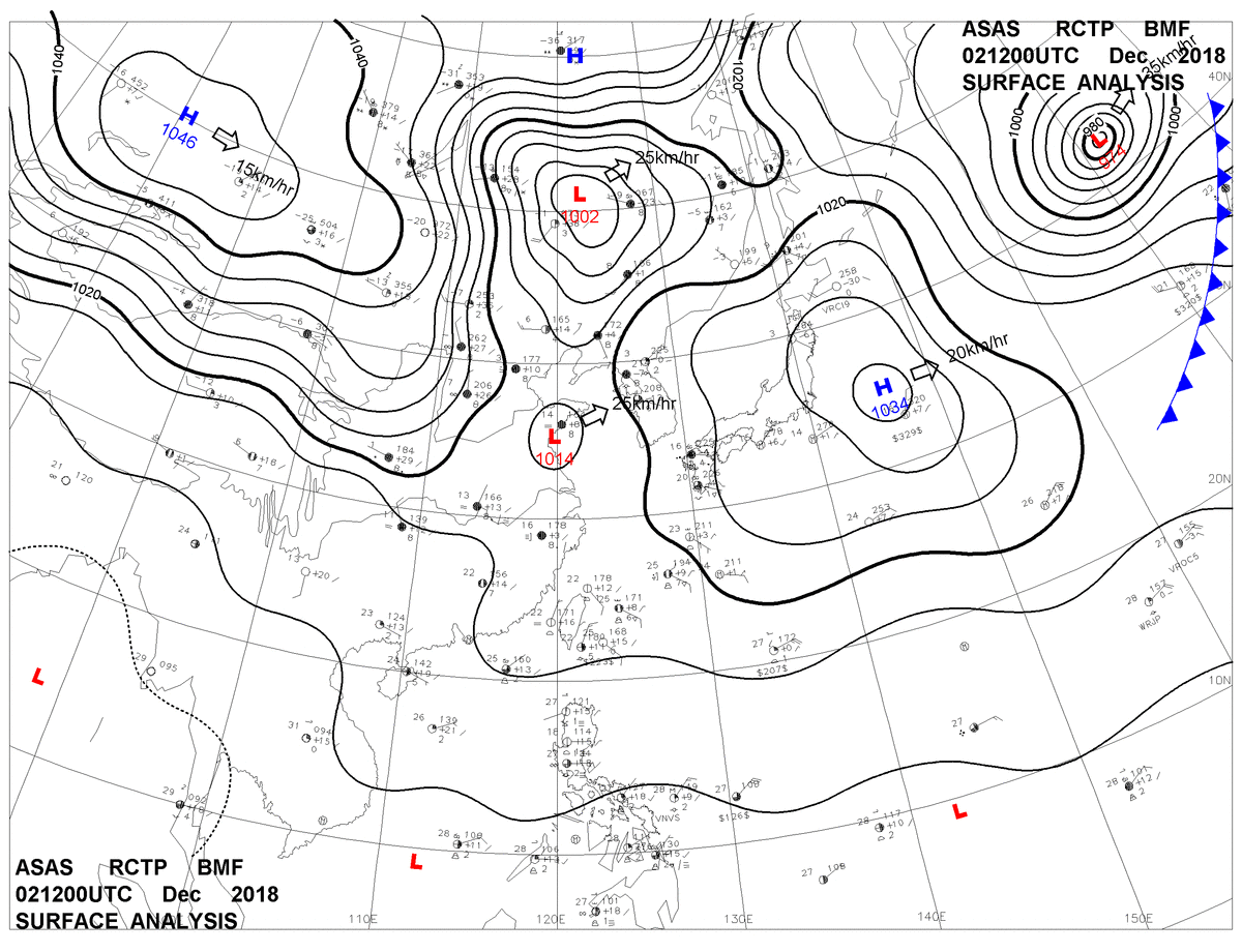 2018/12/02 12z sfcmap 天氣圖