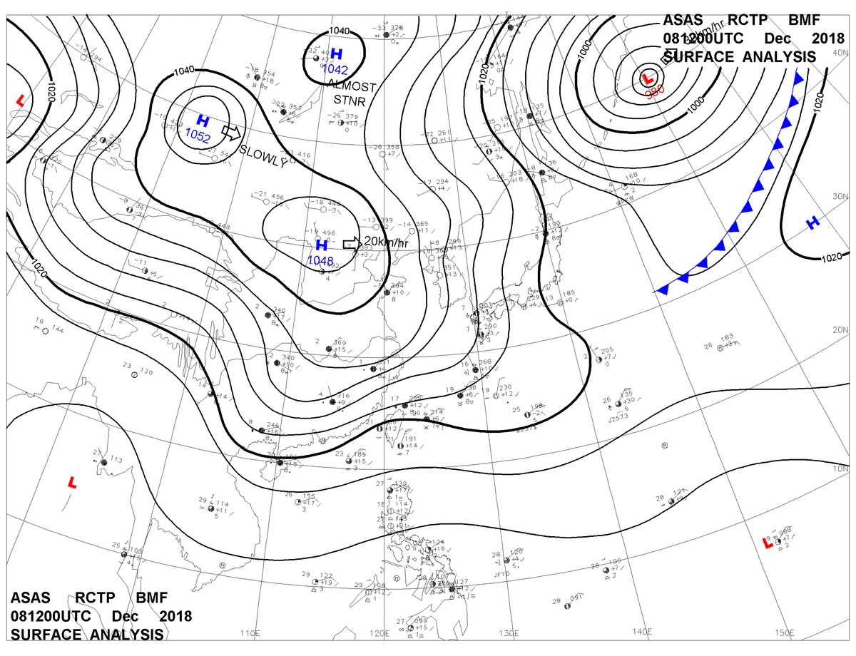2018/12/08 12z sfcmap 天氣圖