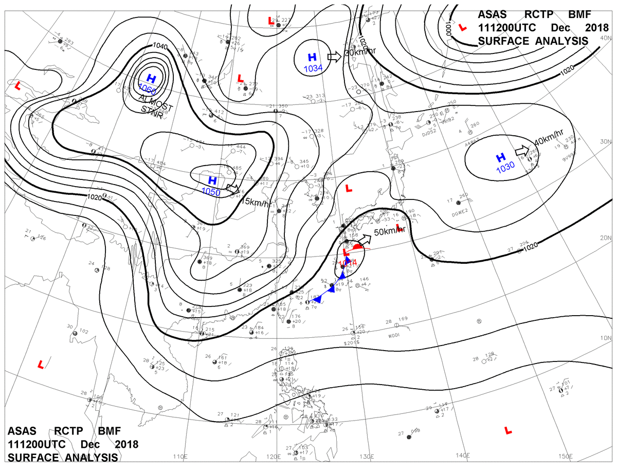 2018/12/11 12z sfcmap 天氣圖