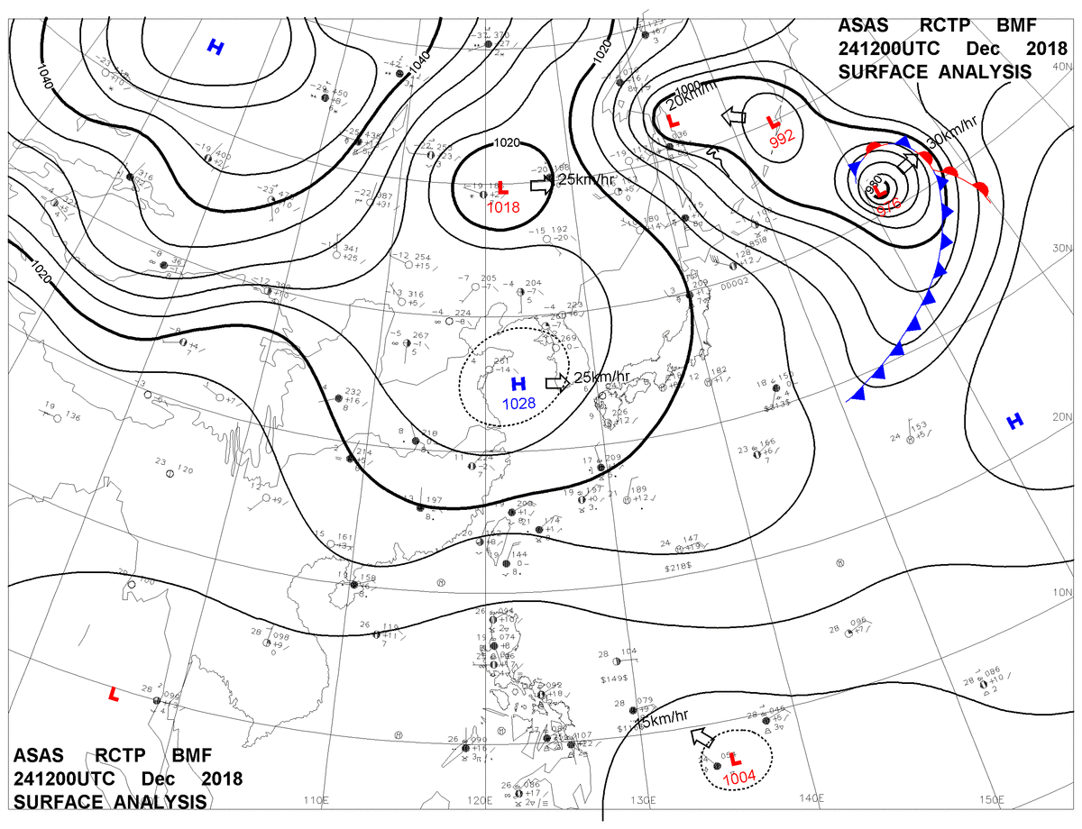 2018/12/24 12z sfcmap 天氣圖