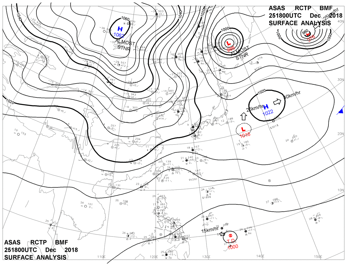 2018/12/25 18z sfcmap 天氣圖