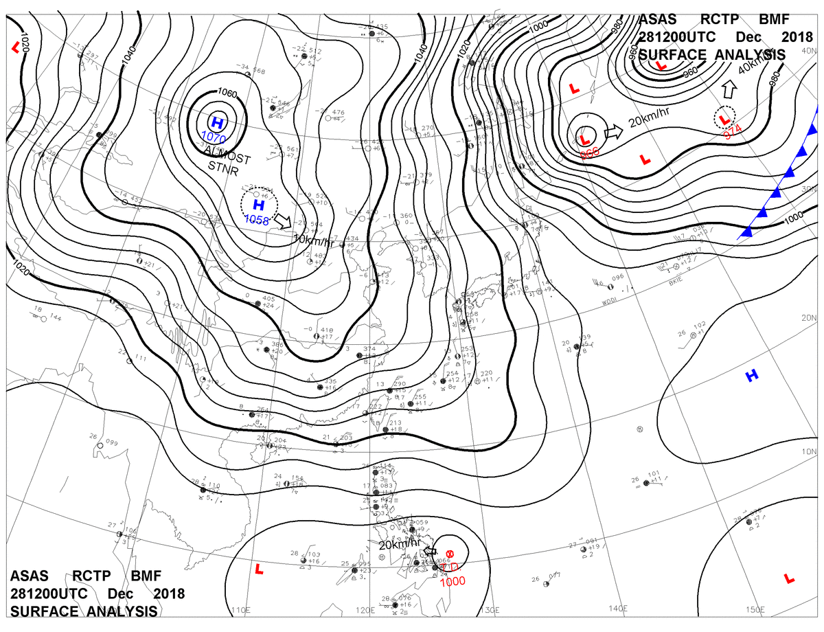2018/12/28 12z sfcmap 天氣圖