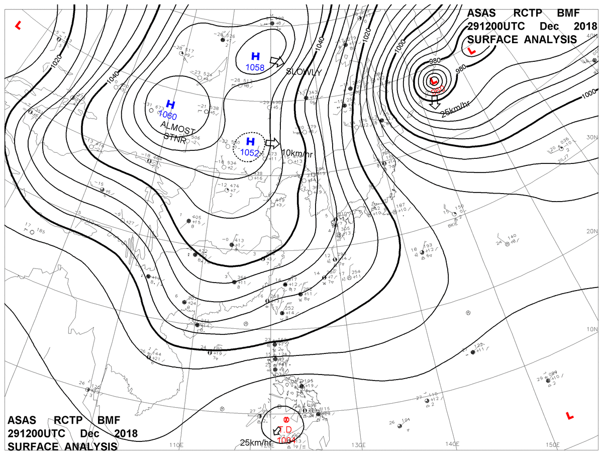 2018/12/29 12z sfcmap 天氣圖