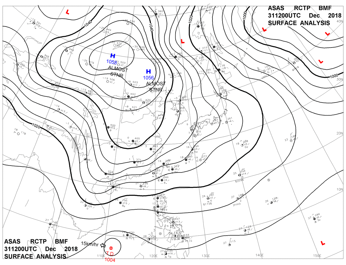 2018/12/31 12z sfcmap 天氣圖