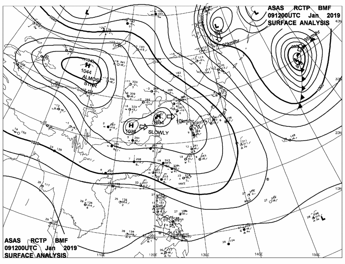 2019/01/09 12z sfcmap 天氣圖