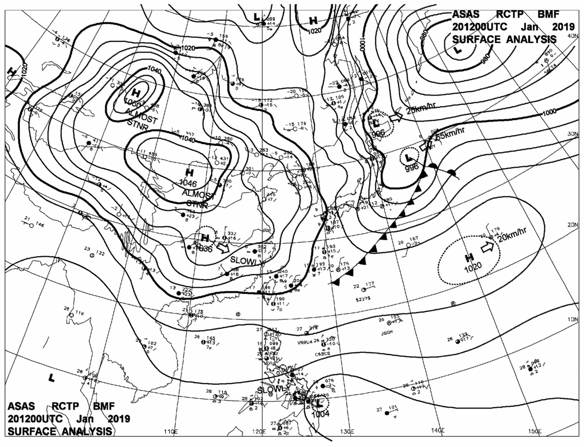 2019/01/20 12z sfcmap 天氣圖