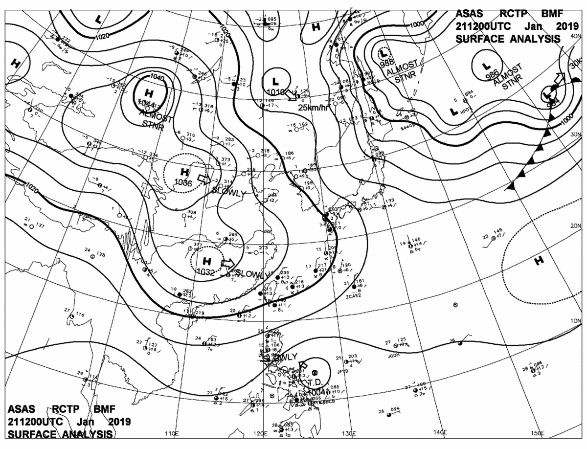 2019/01/21 12z sfcmap 天氣圖