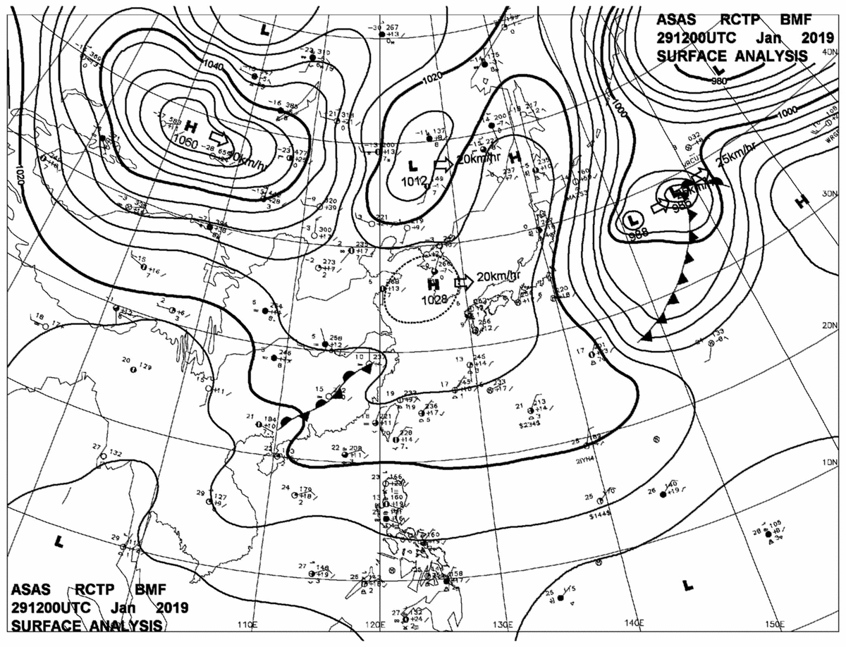 2019/01/29 12z sfcmap 天氣圖