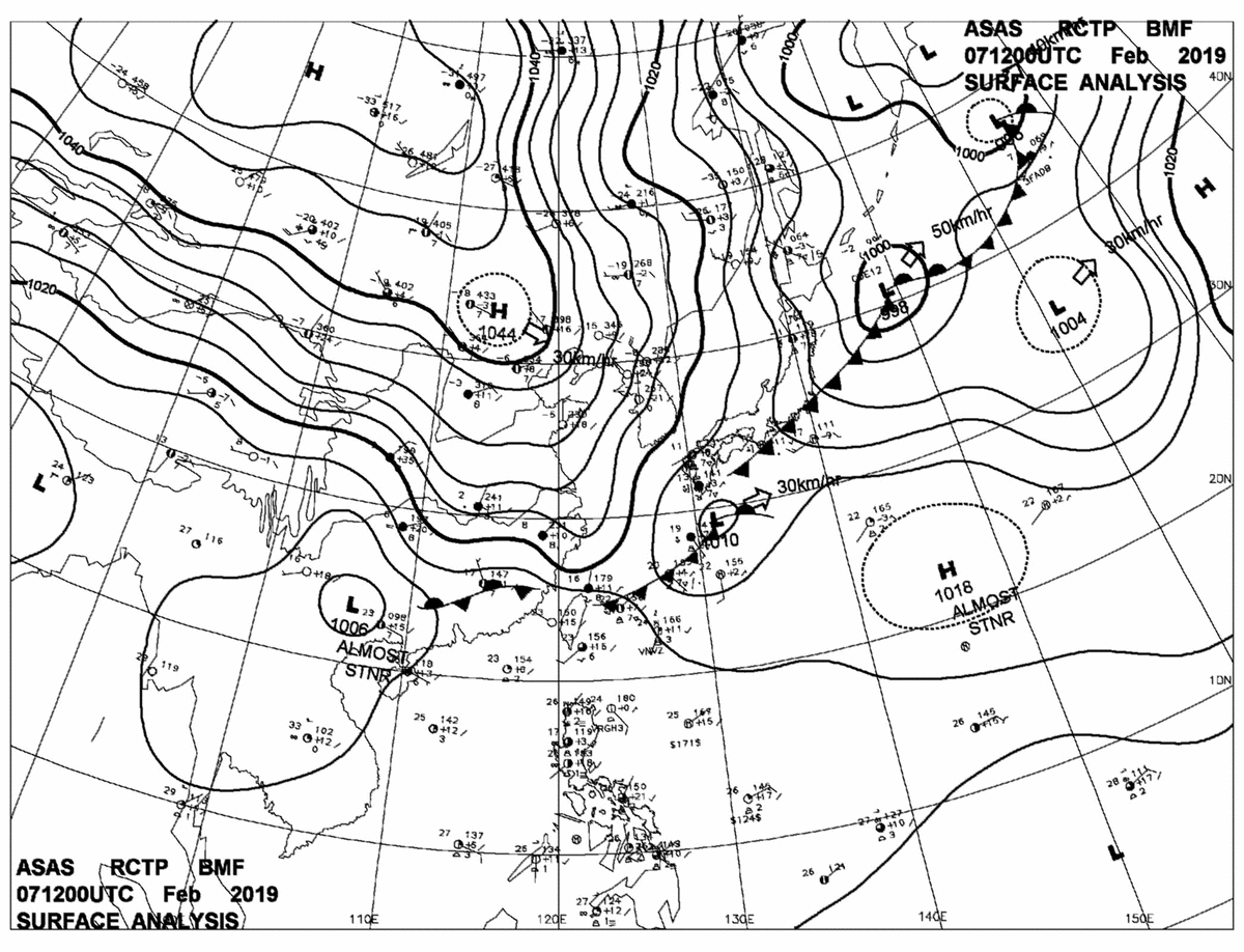 2019/02/07 12z sfcmap 天氣圖