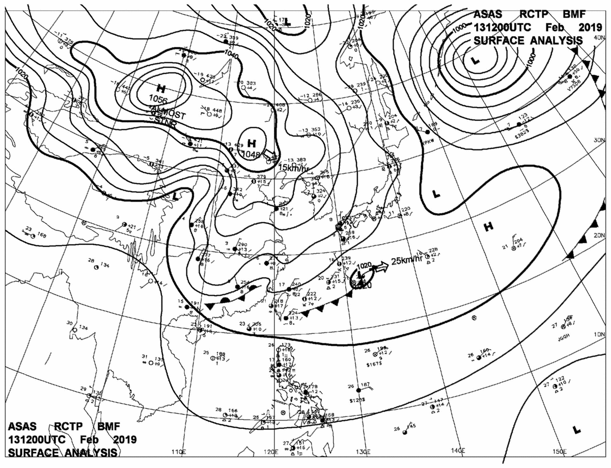 2019/02/13 12z sfcmap 天氣圖