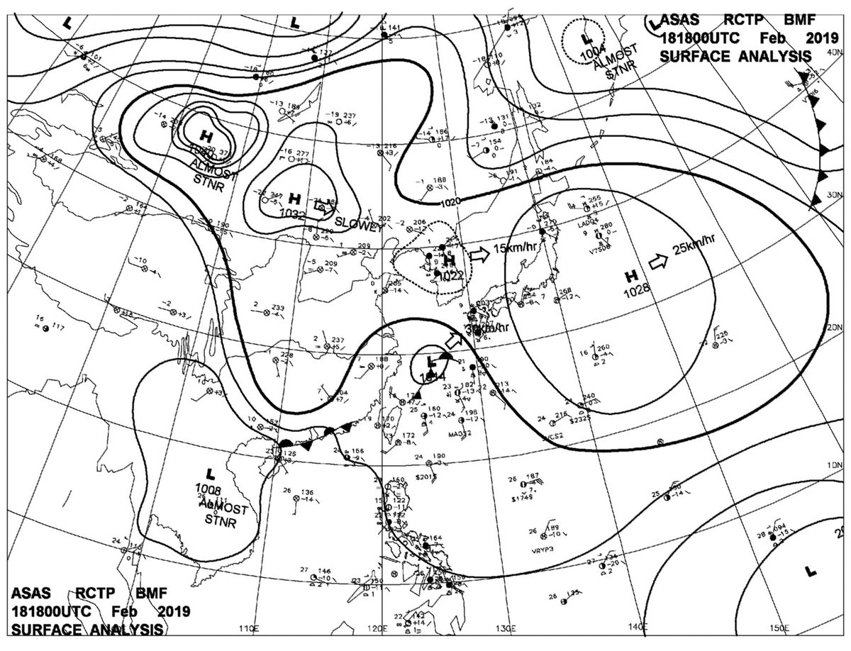 2019/02/18 18z sfcmap 天氣圖