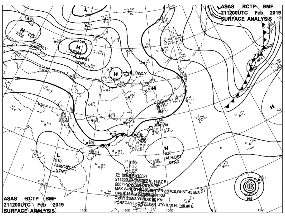2019/02/21 12z sfcmap 天氣圖