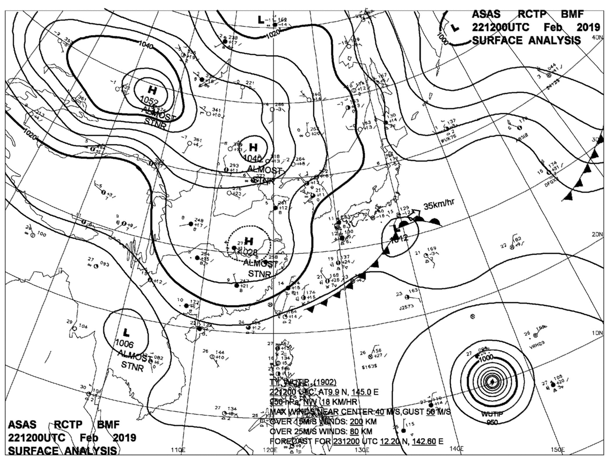 2019/02/22 12z sfcmap 天氣圖