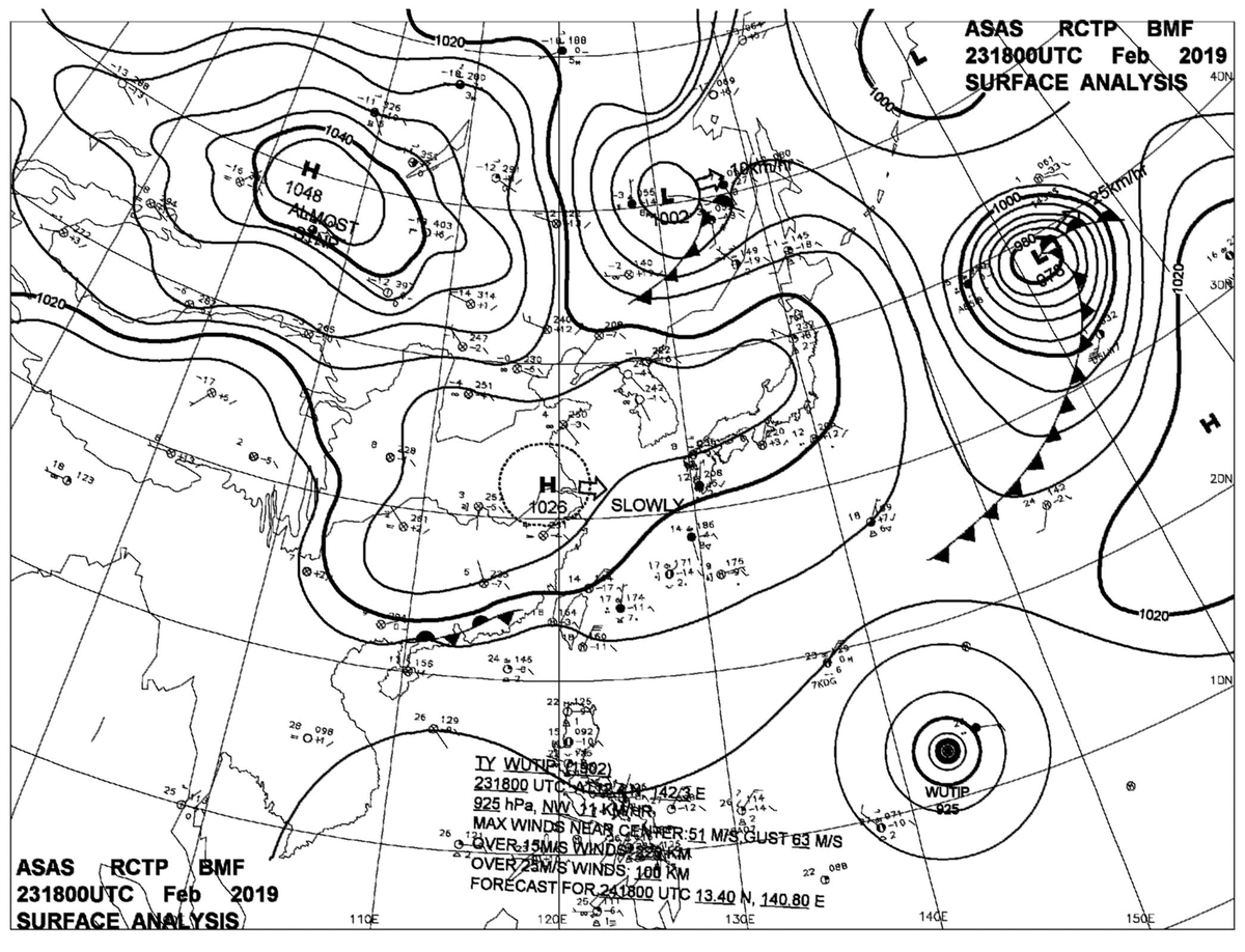 2019/02/23 18z sfcmap 天氣圖