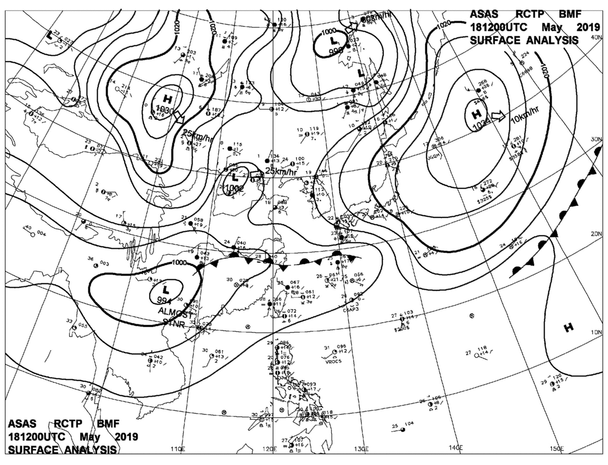 2019/05/18 12z sfcmap 天氣圖