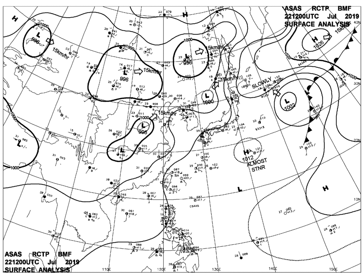 2019/07/22 12z sfcmap 天氣圖