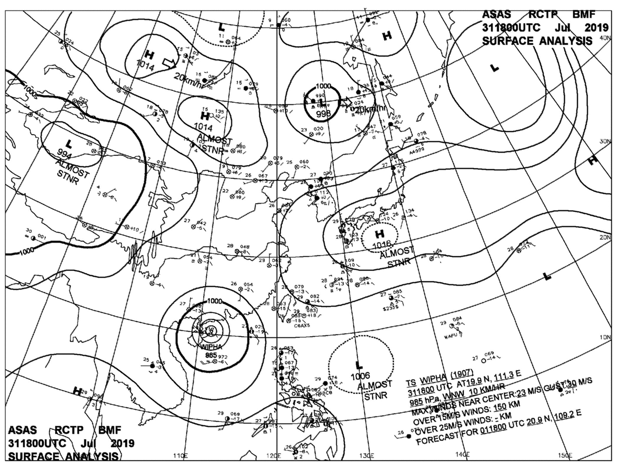 2019/07/31 18z sfcmap 天氣圖