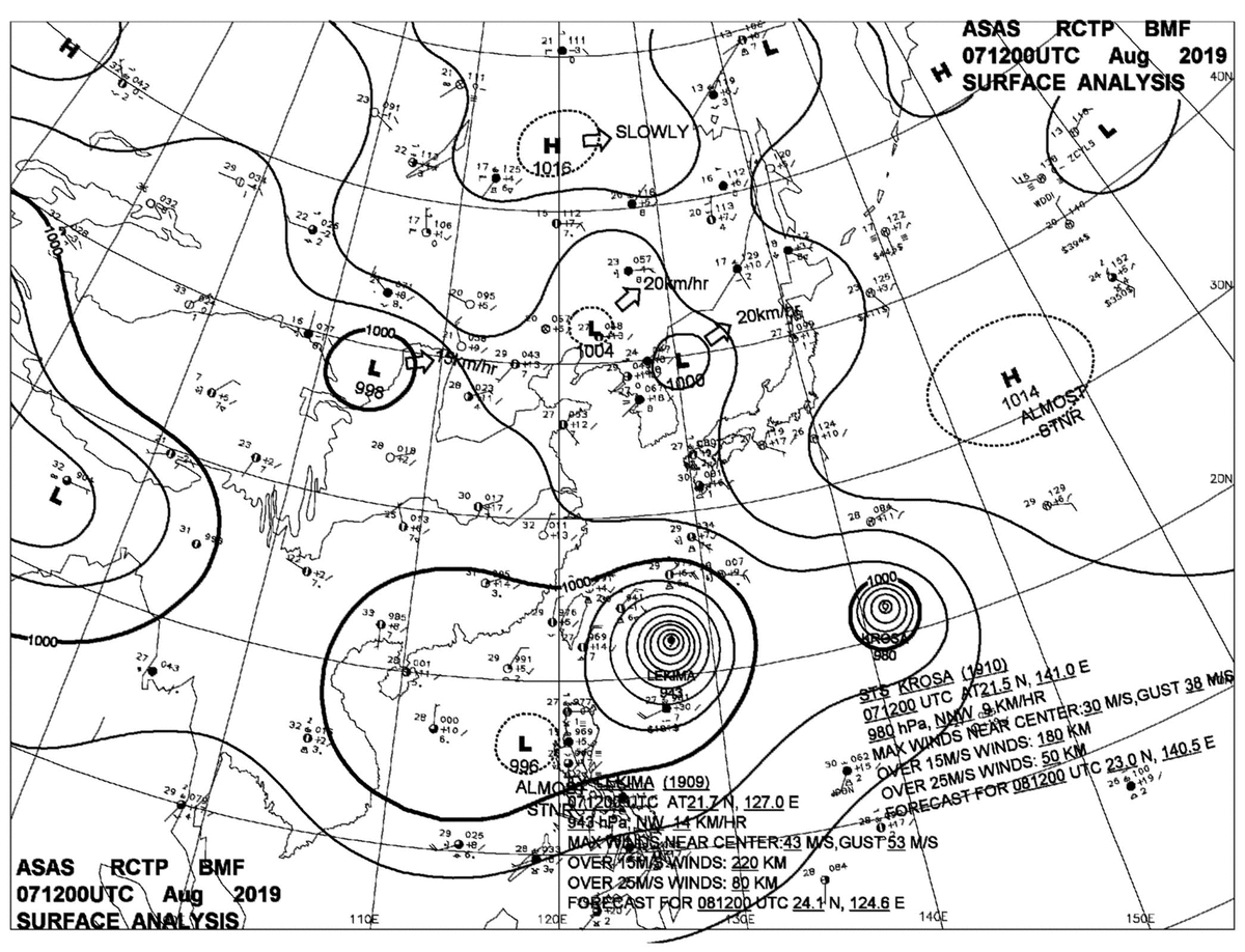 2019/08/07 12z sfcmap 天氣圖