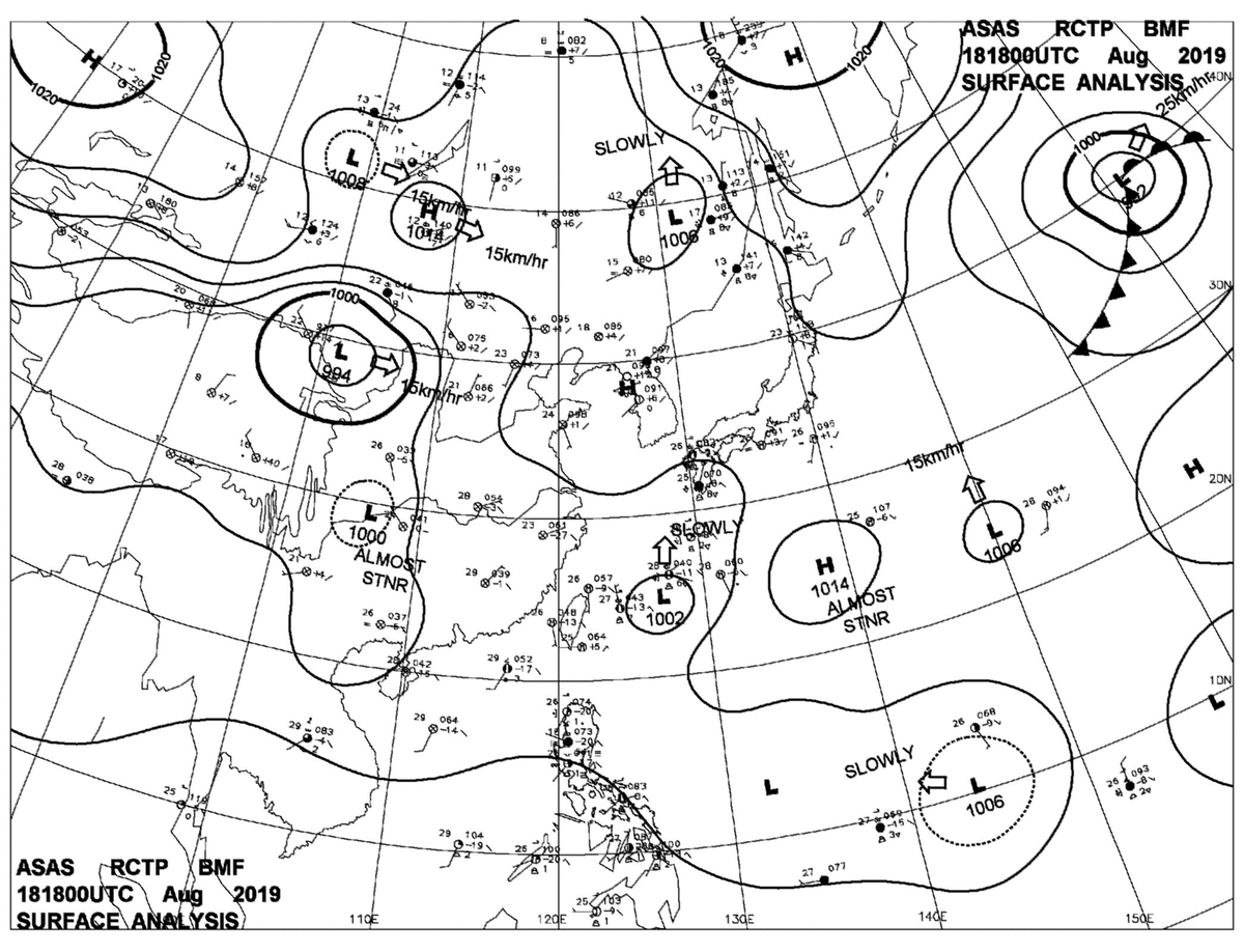 2019/08/18 18z sfcmap 天氣圖