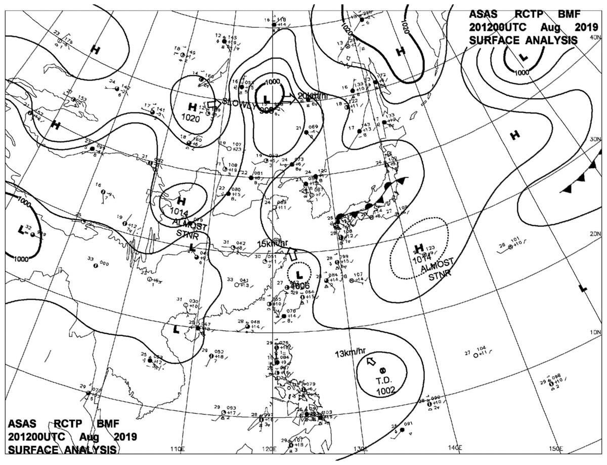2019/08/20 12z sfcmap 天氣圖