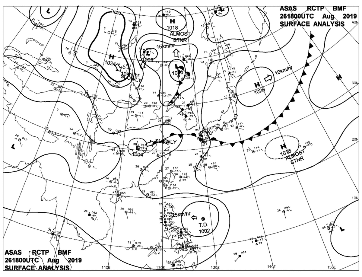 2019/08/26 18z sfcmap 天氣圖
