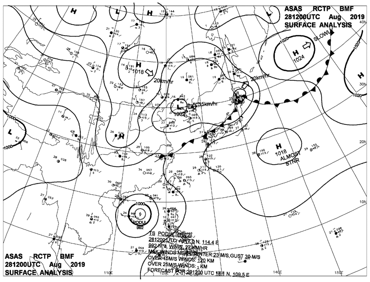 2019/08/28 12z sfcmap 天氣圖