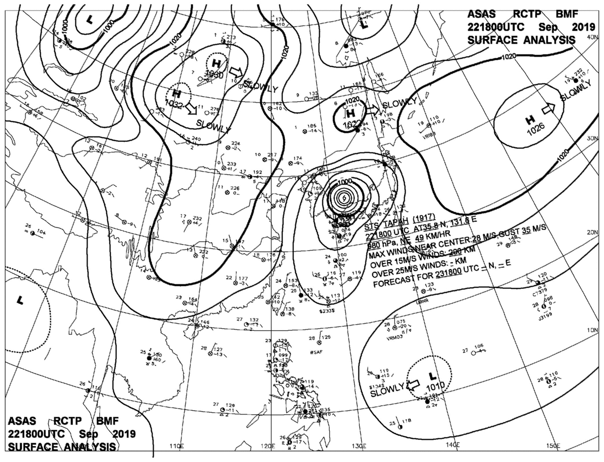 2019/09/22 18z sfcmap 天氣圖