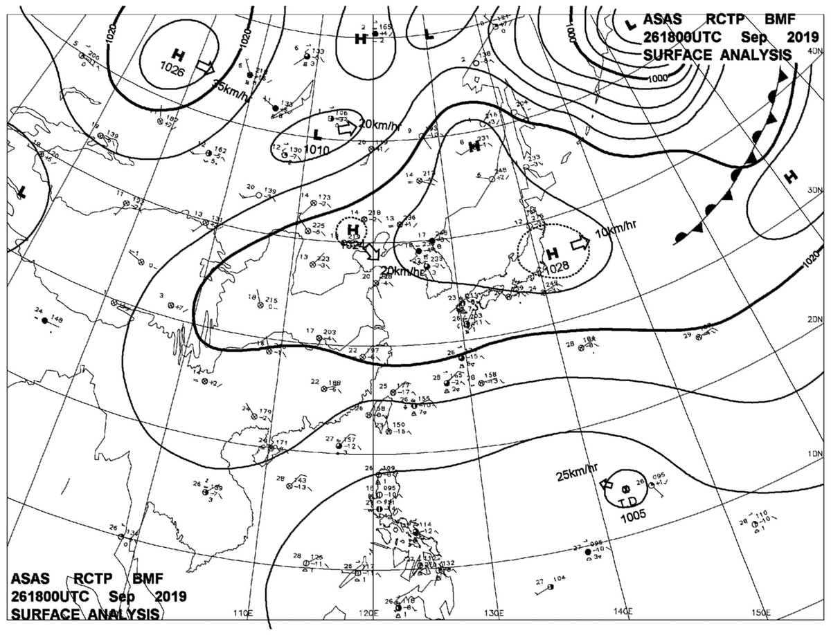 2019/09/26 18z sfcmap 天氣圖