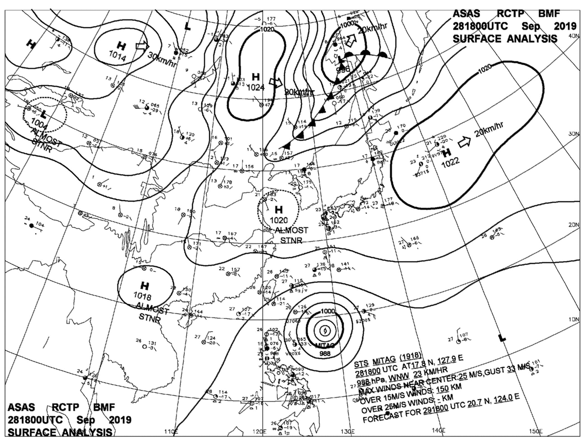 2019/09/28 18z sfcmap 天氣圖