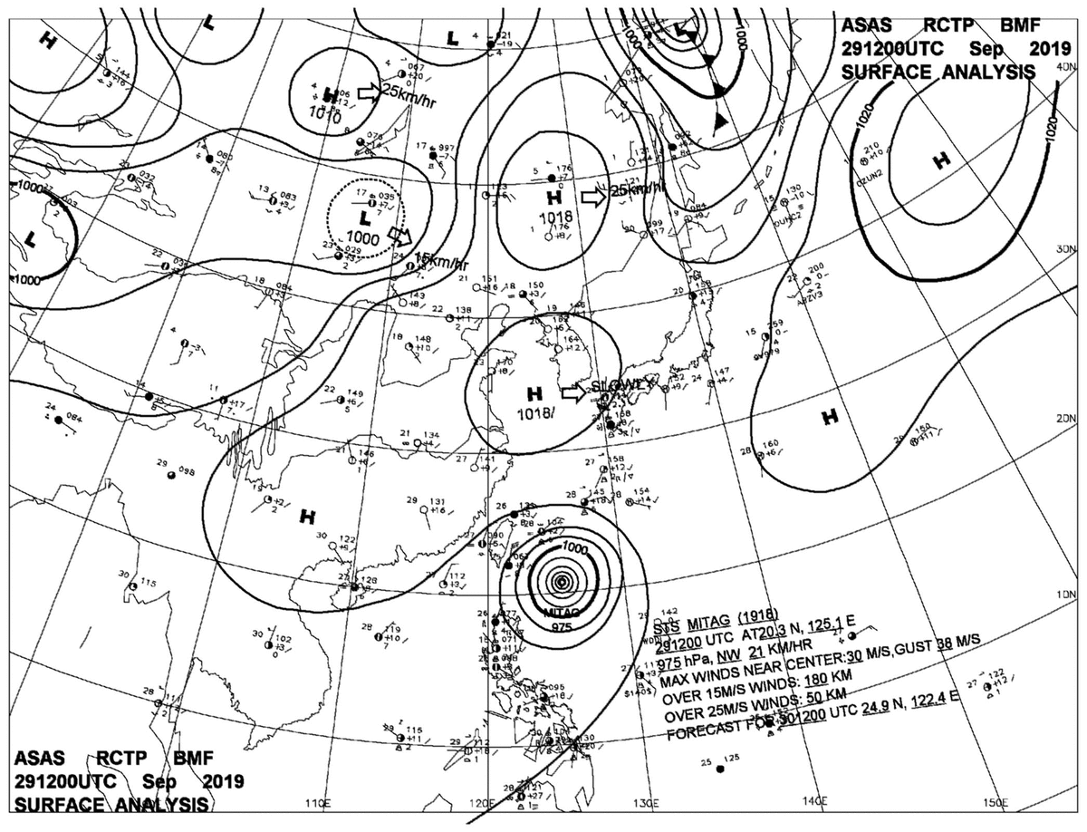 2019/09/29 12z sfcmap 天氣圖