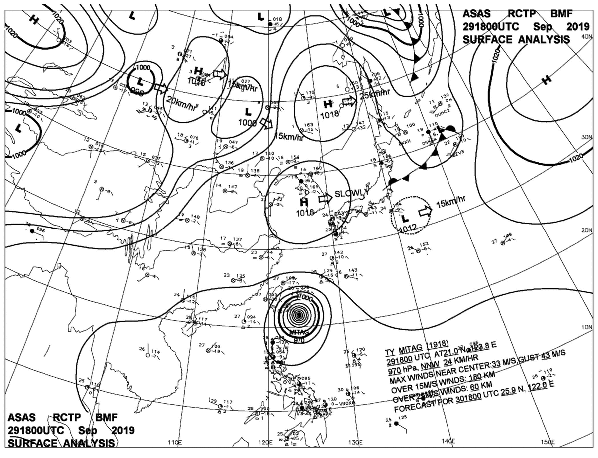 2019/09/29 18z sfcmap 天氣圖