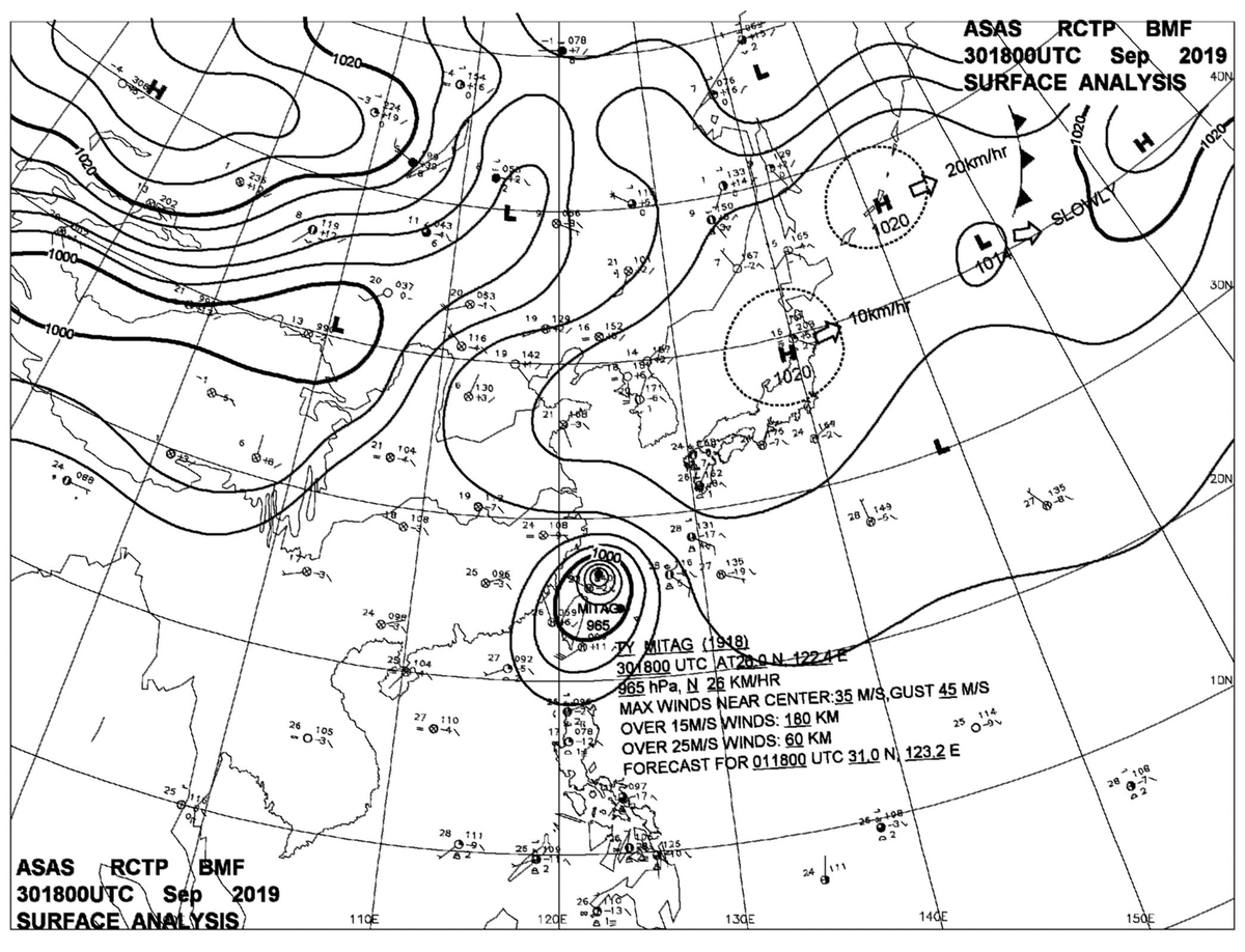 2019/09/30 18z sfcmap 天氣圖