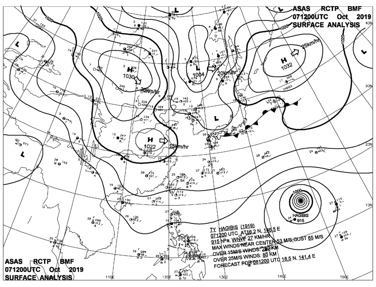 2019/10/07 12z sfcmap 天氣圖