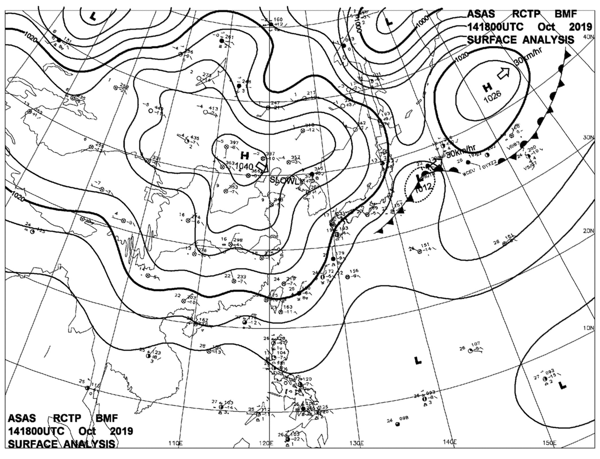2019/10/14 18z sfcmap 天氣圖