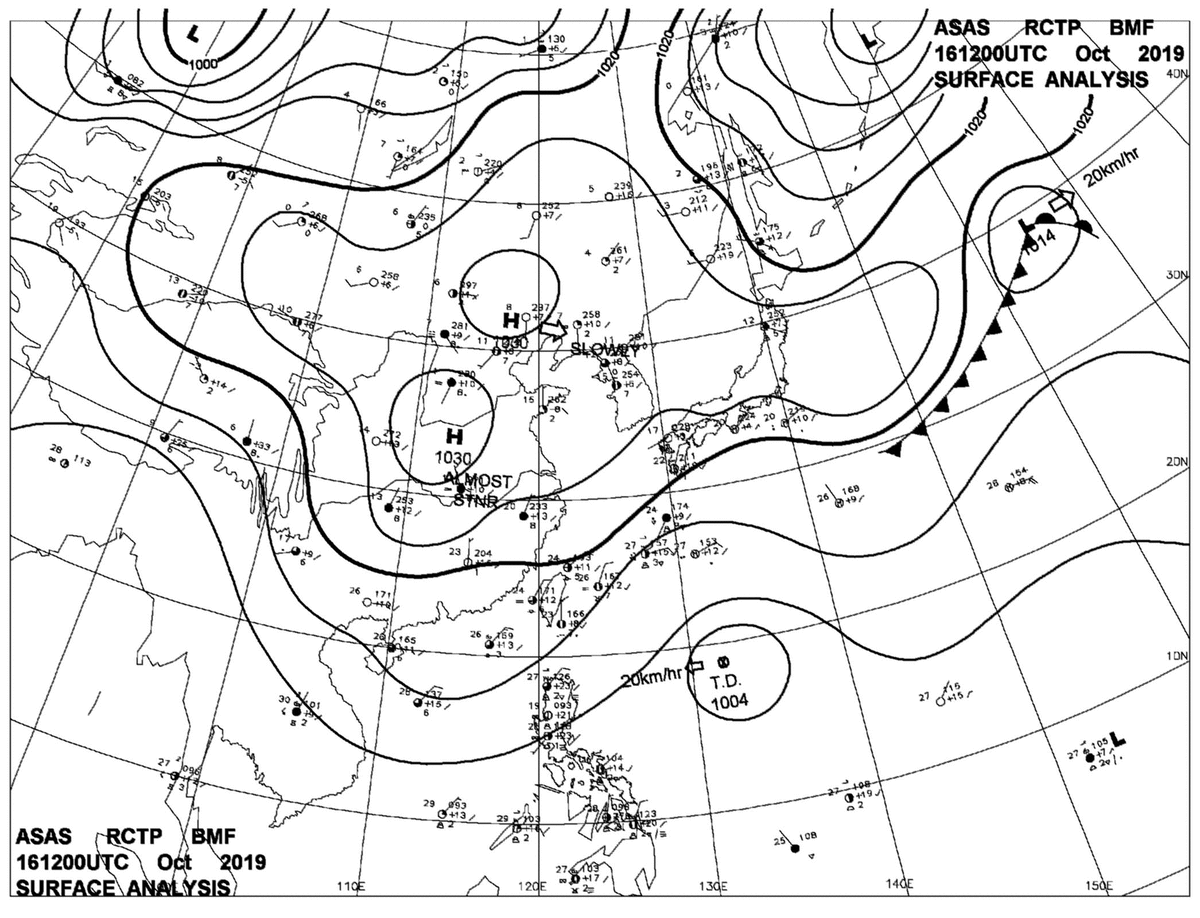 2019/10/16 12z sfcmap 天氣圖