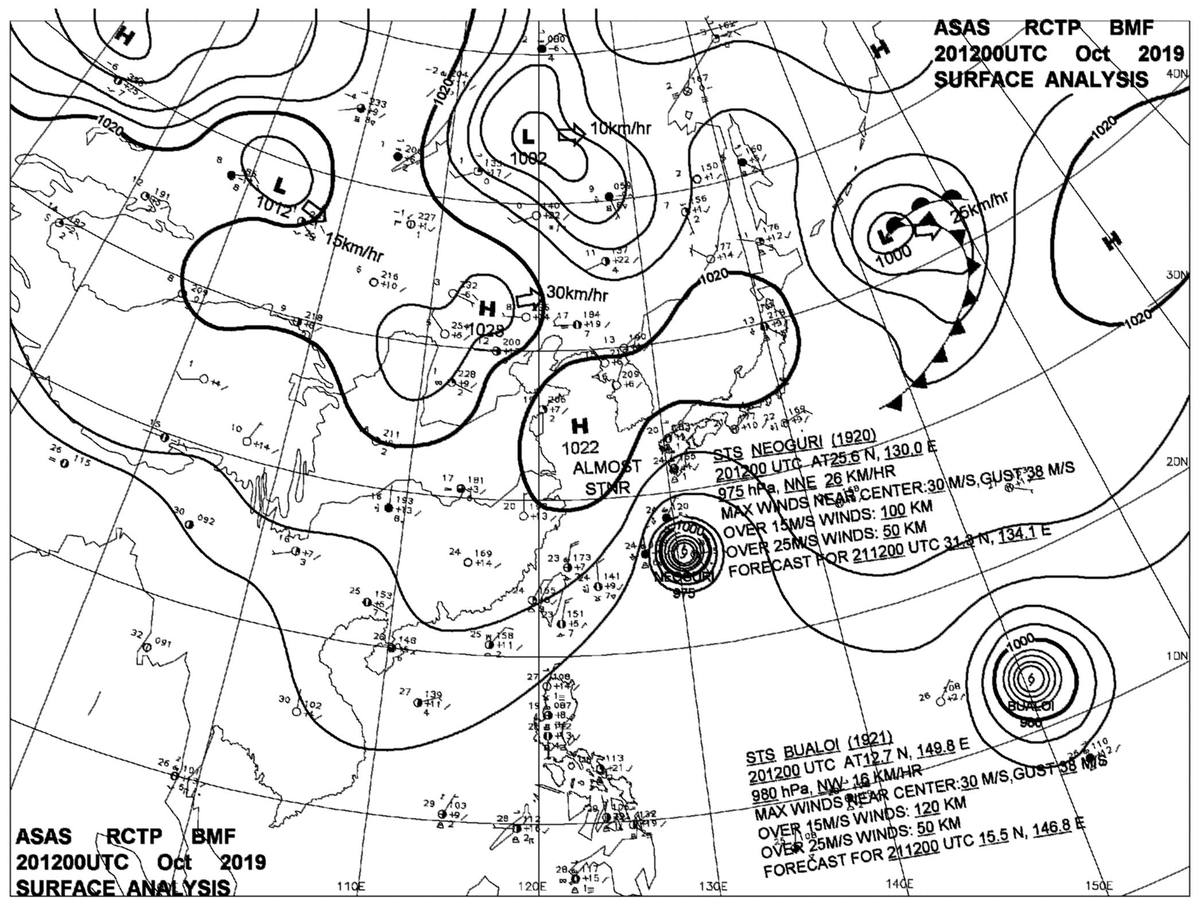 2019/10/20 12z sfcmap 天氣圖