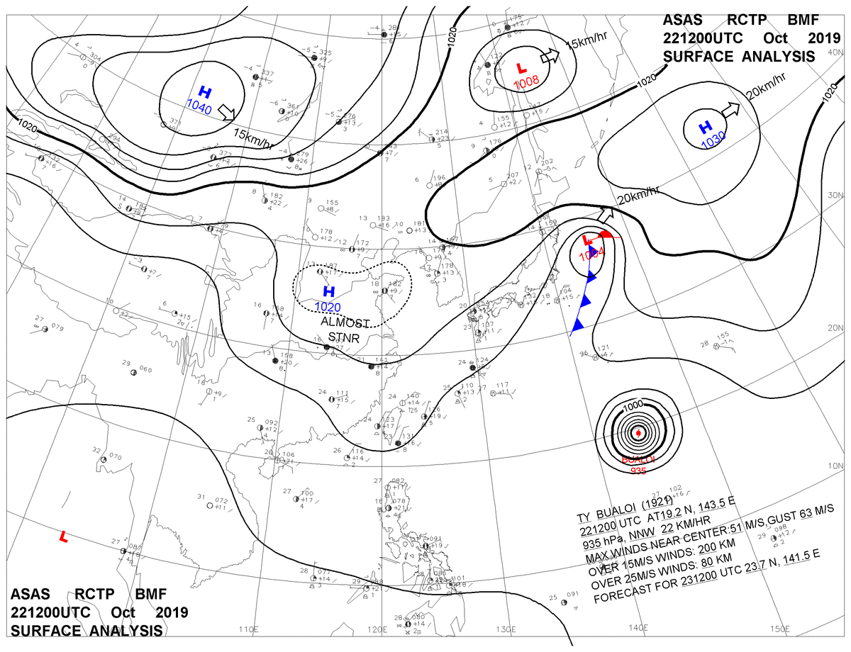 2019/10/22 12z sfcmap 天氣圖