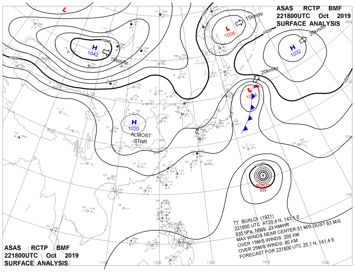 2019/10/22 18z sfcmap 天氣圖