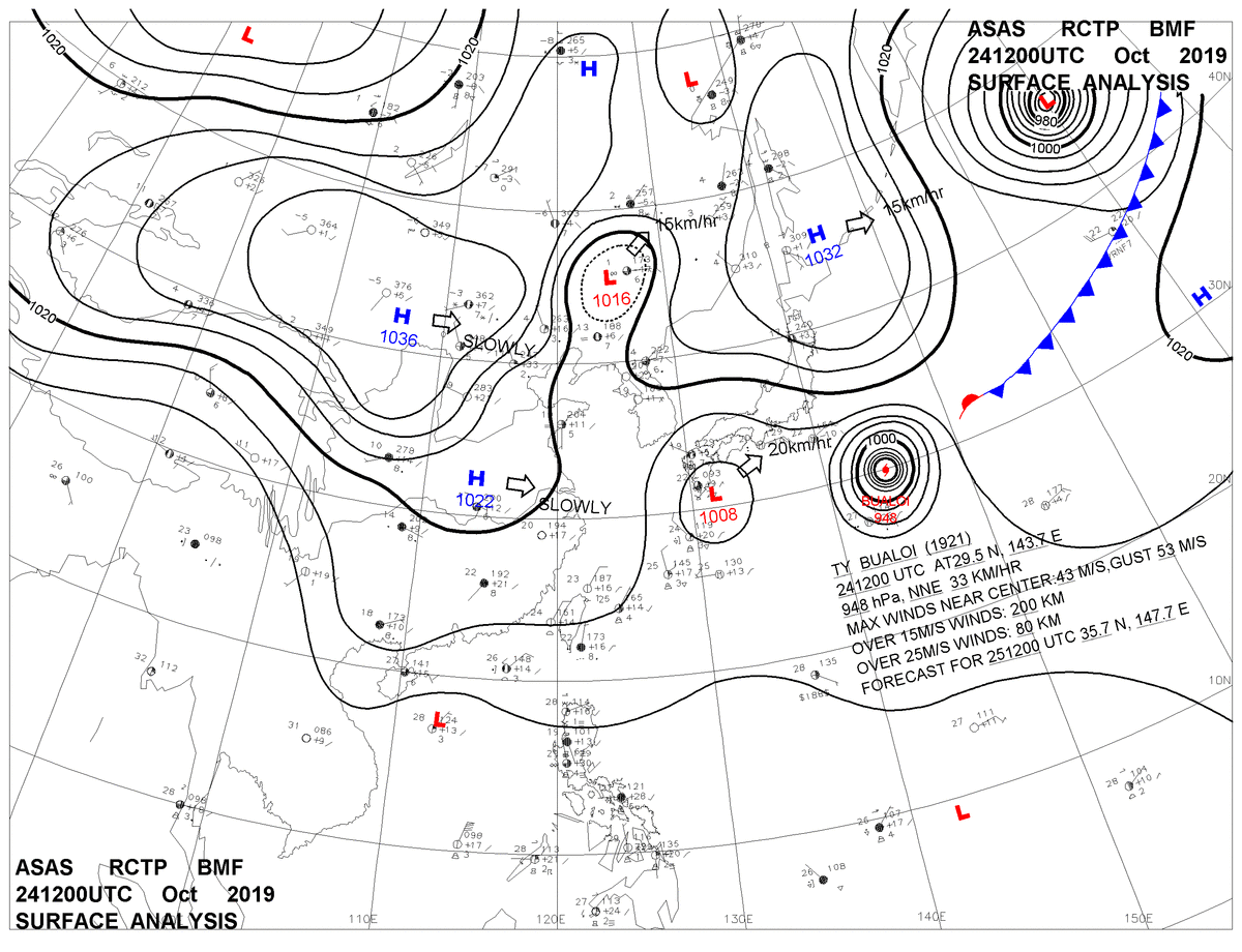 2019/10/24 12z sfcmap 天氣圖