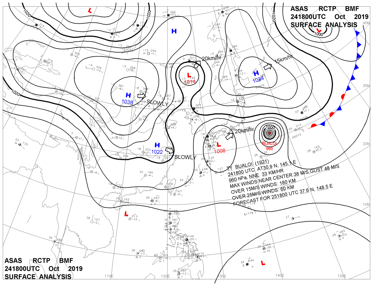 2019/10/24 18z sfcmap 天氣圖