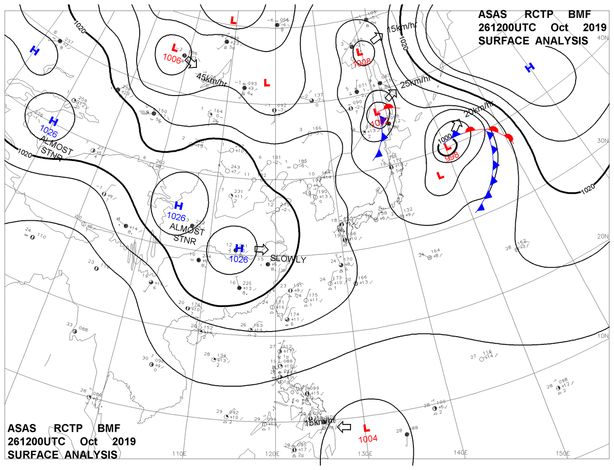 2019/10/26 12z sfcmap 天氣圖