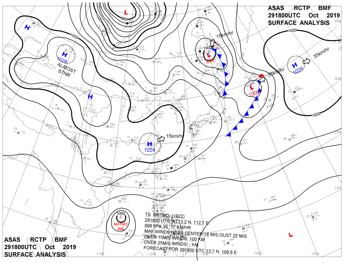2019/10/29 18z sfcmap 天氣圖