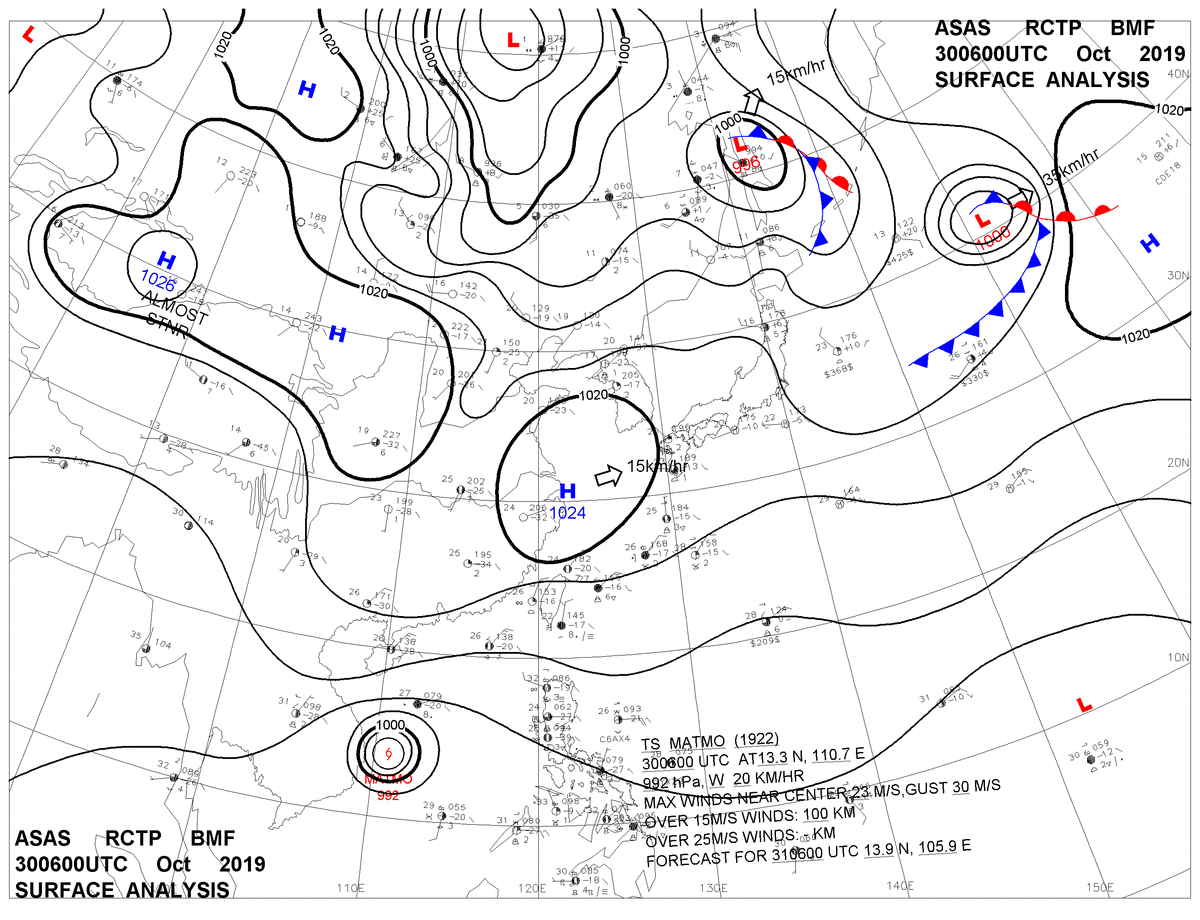 2019/10/30 06z sfcmap 天氣圖