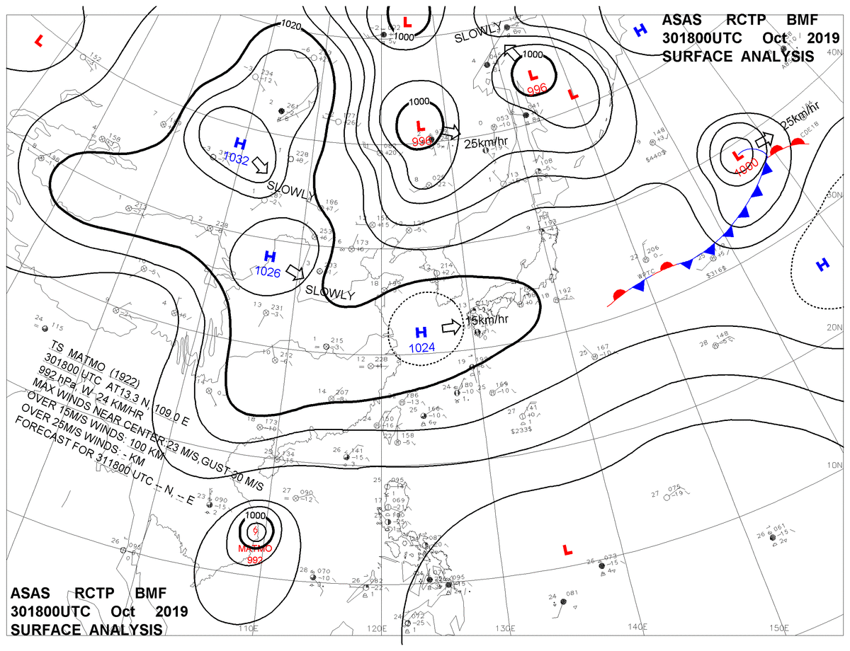 2019/10/30 18z sfcmap 天氣圖